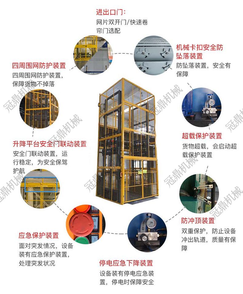 2、安全系數(shù)高,如遇突發(fā)事故,臺(tái)面轎廂在原位置自動(dòng)鎖死,不會(huì)出現(xiàn)突然急速下墜情況,從而保障您的人員財(cái)產(chǎn)等不受損失。