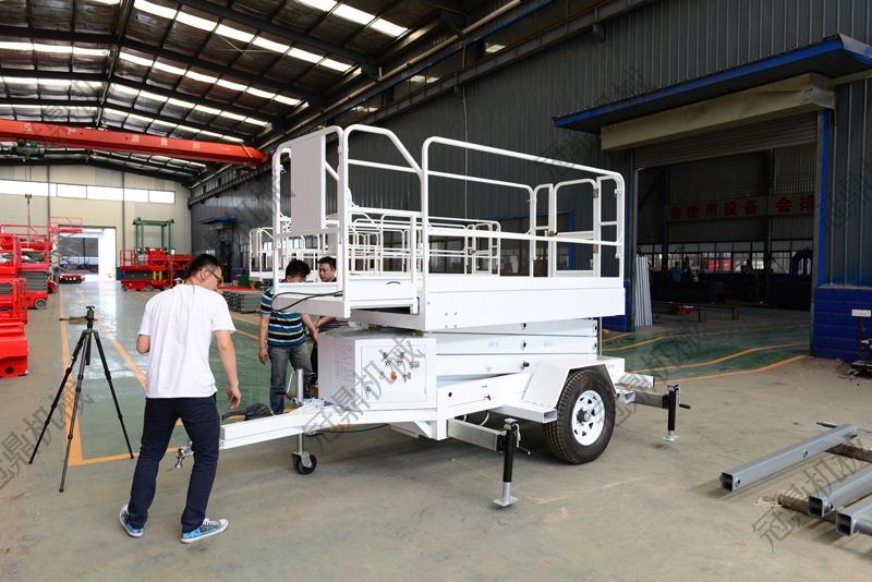 剪叉式高空作業(yè)平臺:是用途廣泛的高空作業(yè)專用設(shè)備。它的剪叉機(jī)械結(jié)構(gòu),使升降臺起升有較高的穩(wěn)定性,寬大的作業(yè)平臺和較高的承載能力,使高空作業(yè)范圍更大、并適合多人同時作業(yè)。